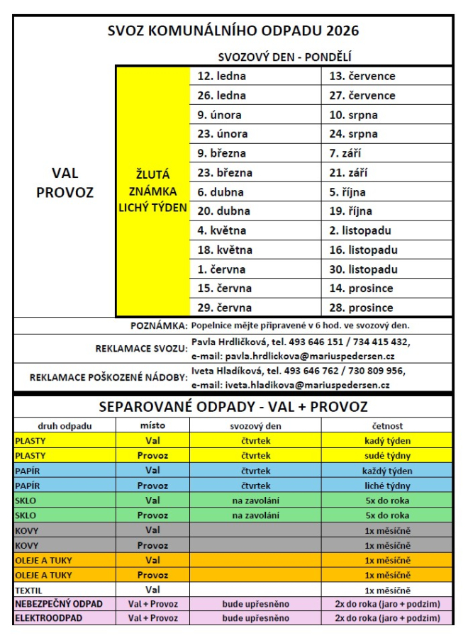 Svozový kalendář 2026